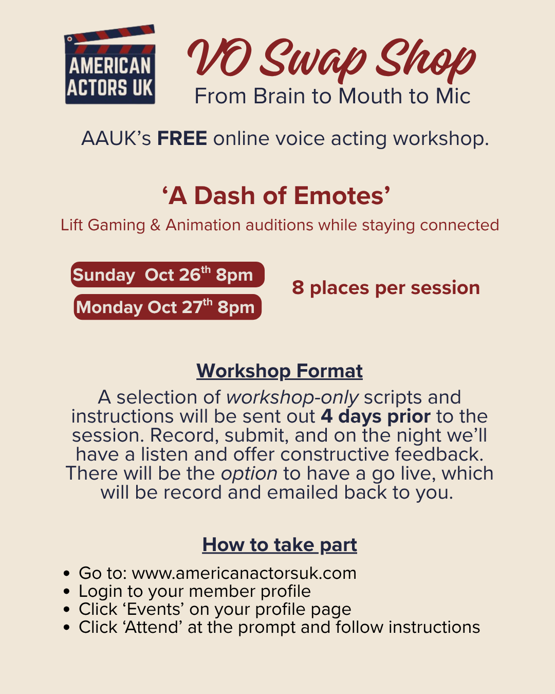 We welcome all American and Canadian actors with legal right to work in UK to apply for membership and join us. Here are some benefits of joining: